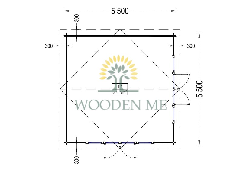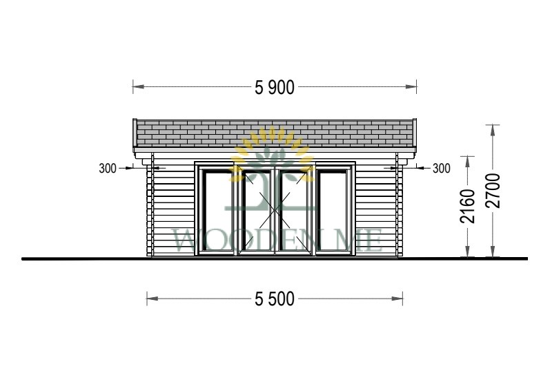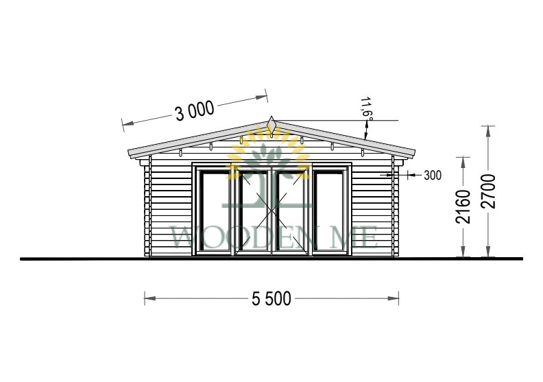 Koka dārza mājiņa MIA (44 mm), 5.5 × 5.5 m, 30 m²